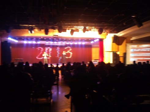 2012年12月26日晚7:30,球盟会在北校活动中心隆重举办主题为“感恩数理,一路有你”2013元旦晚会,出席本次元旦晚会的特邀嘉宾有公司党委书记肖基毅老师、经理欧阳自根老师、副经理胡和平老师、各系室主任、支部书记、学工室老师等。球盟会全体同学观看了演出。