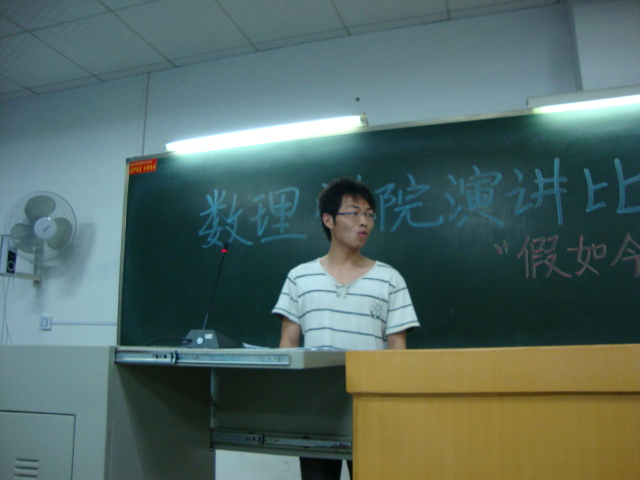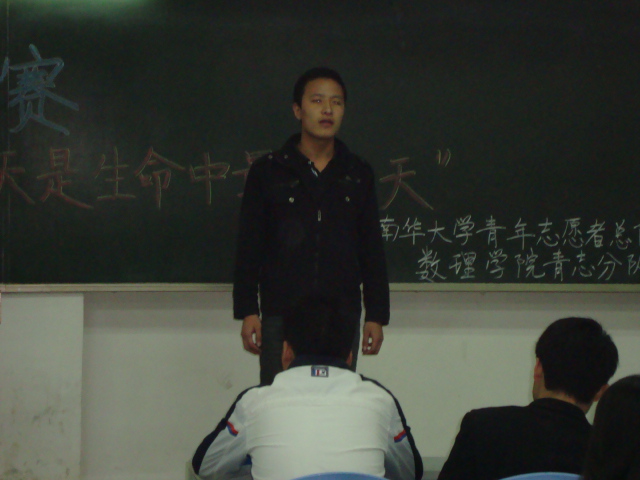 2010年4月25日晚19:30,球盟会青年志愿者分队在9—203教室举办了“假如今天是我生命的最后一天”的演讲比赛。在主持人宣布比赛开始后,各位选手依次上台进行演讲,选手们激情四溢,从不同角度阐述了自己对生命里最后一天的感受。最后,在主持人的建议下,许多同学都主动上台读了一段对我们有深刻触动的话语,使全场同学都陷入了对生命中最后一天的深思中。此次活动不仅给同学们提供了一个展现自我、提升自我的舞台和机会,更促使同学们对生命和责任进行了思考。