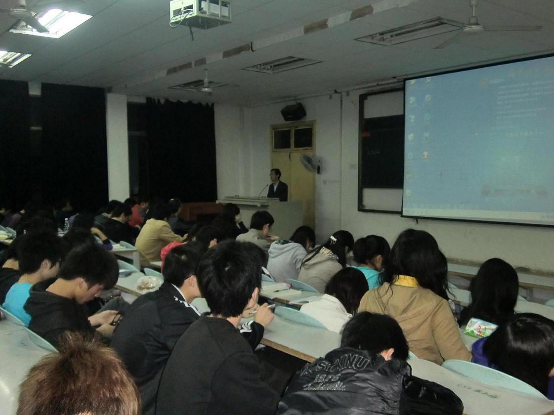 2011年5月24日晚,由球盟会团委主办的“学党史、知党情、跟党走”纪念建党90周年专题讲座在9-401教室隆重举行。院团委特邀公司党委书记、博士、教授彭建军老师做了题为《中国出了个毛泽东》专题讲座。来自全院各班的近100名同学参加了此次活动。讲座由院学工室陈艳老师主持。