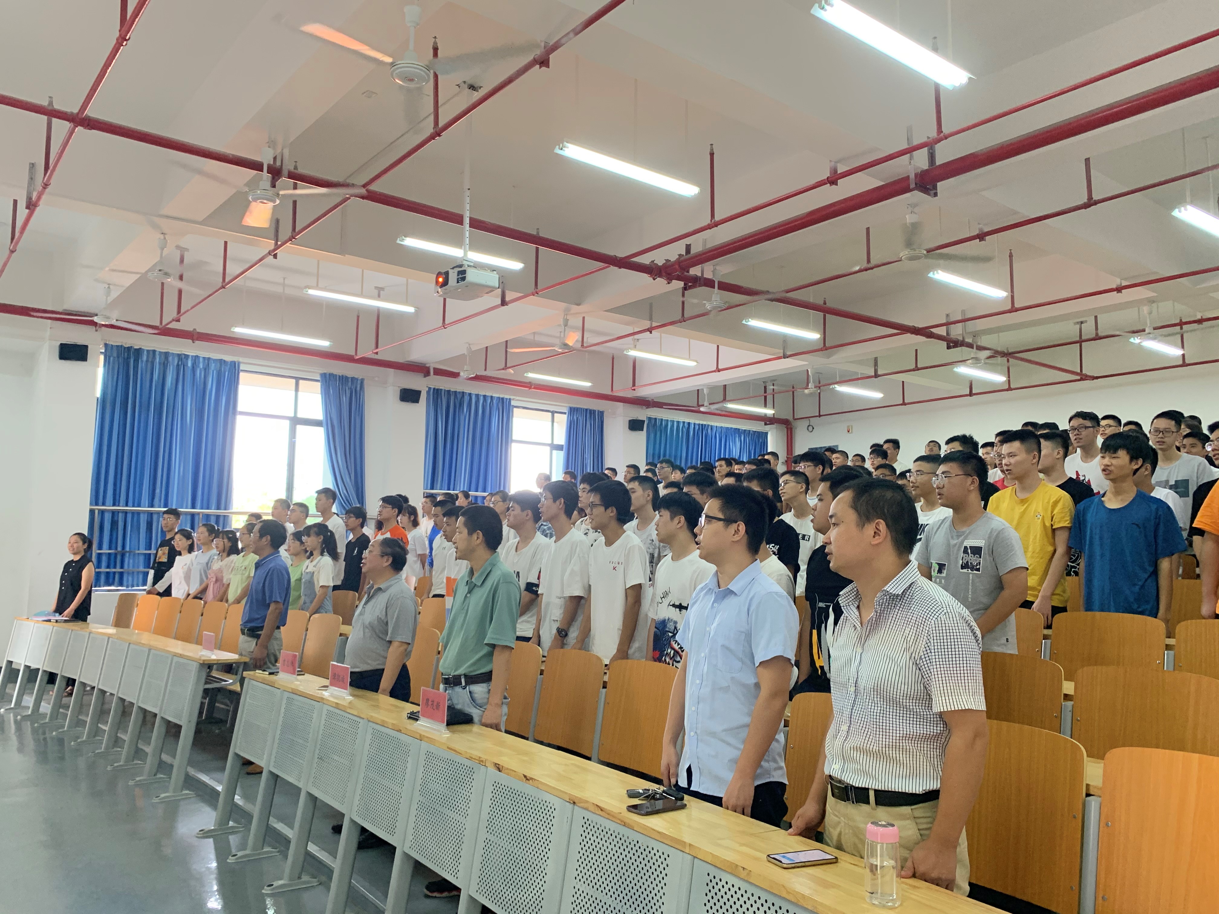 活动第一项,全体起立唱国歌。
