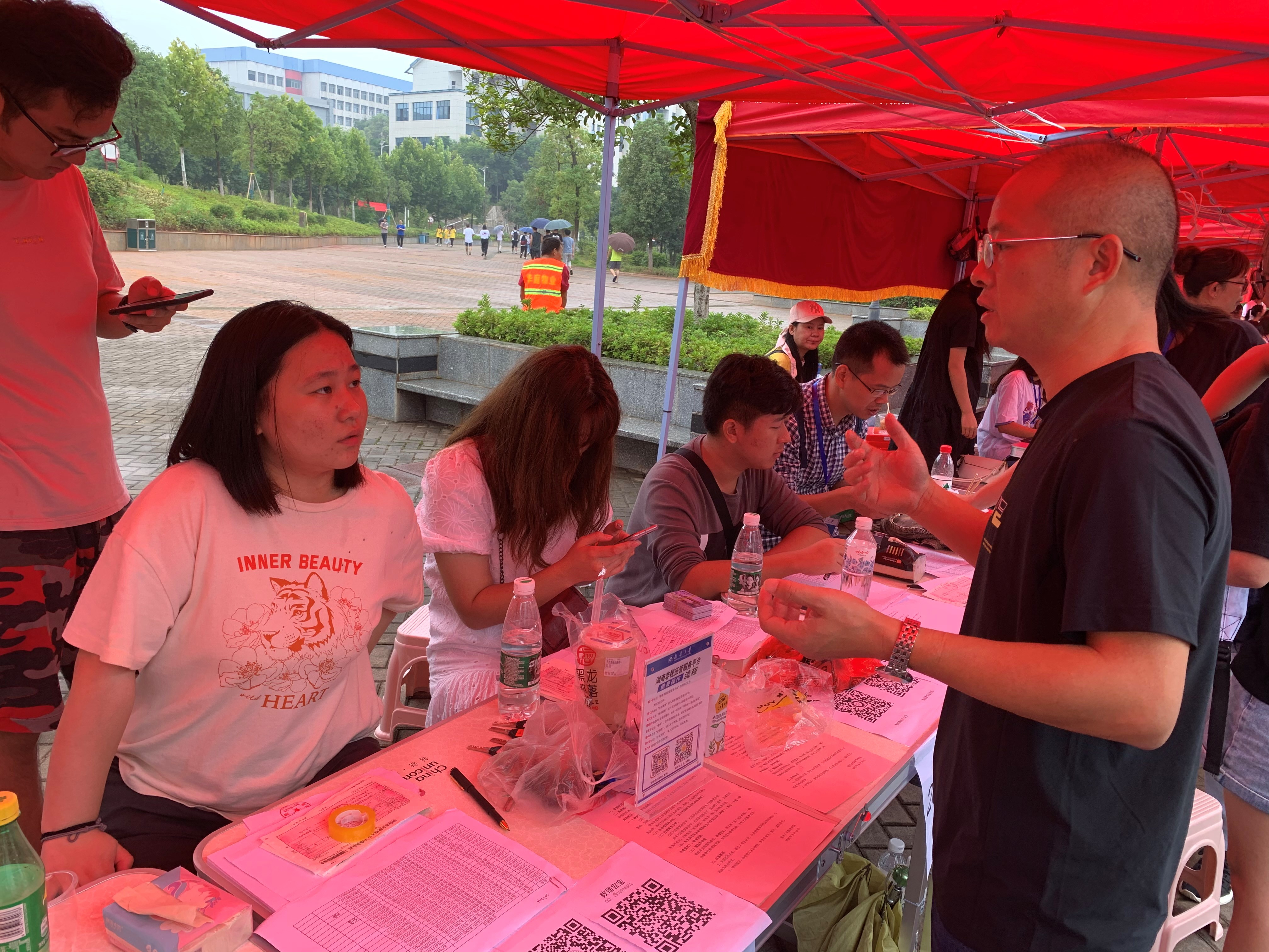 公司党委副书记曾志伟老师在迎新点与员工交流