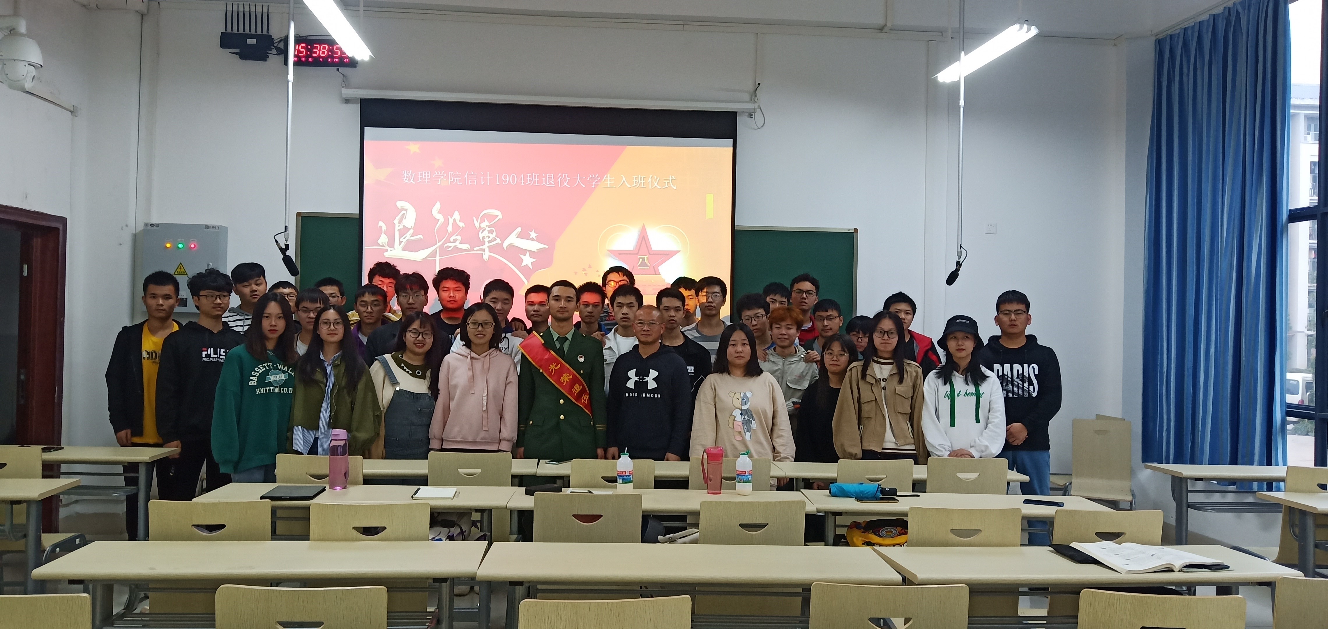 10月15日下午,球盟会在雨母校区崇德楼104教室举行退役老员工凯撒尔同学的复学入班仪式。公司党委副书记兼班主任曾志伟老师、退役老员工凯撒尔、信计1904班全体同学参加会议。曾志伟老师主持会议。