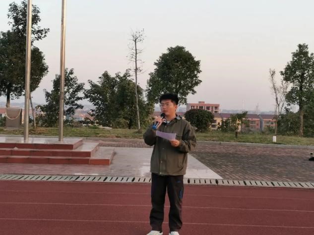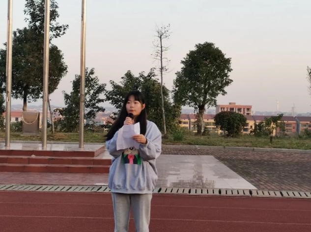 然后,员工会主席郑宇茹带领全体同学面向国旗宣誓。迎着朝阳的田径场上,被坚定有力的宣言充斥着,当代青年的爱国赤子之心在庄严的红旗下熠熠生辉。