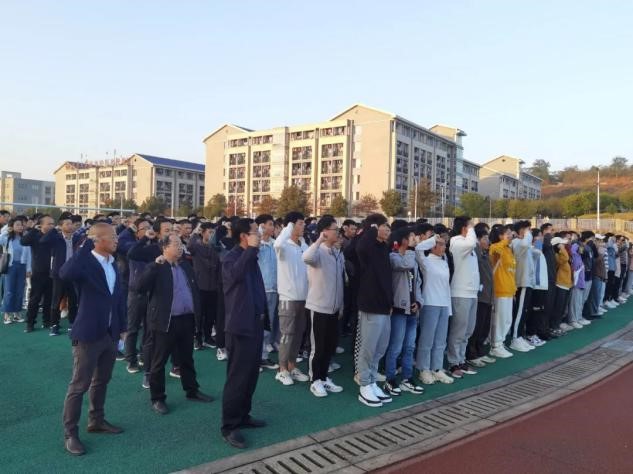 11月9日早7点,球盟会“国旗下的演讲”主题教育活动于雨母校区田径场顺利举行。参加活动有经理欧阳自根、公司党委书记谭凯旋、副经理廖荗新、党委副书记曾志伟、辅导员陈小兰和尹馨逸、全体班主任以及全体本科生和研究生。活动由曾志伟主持。